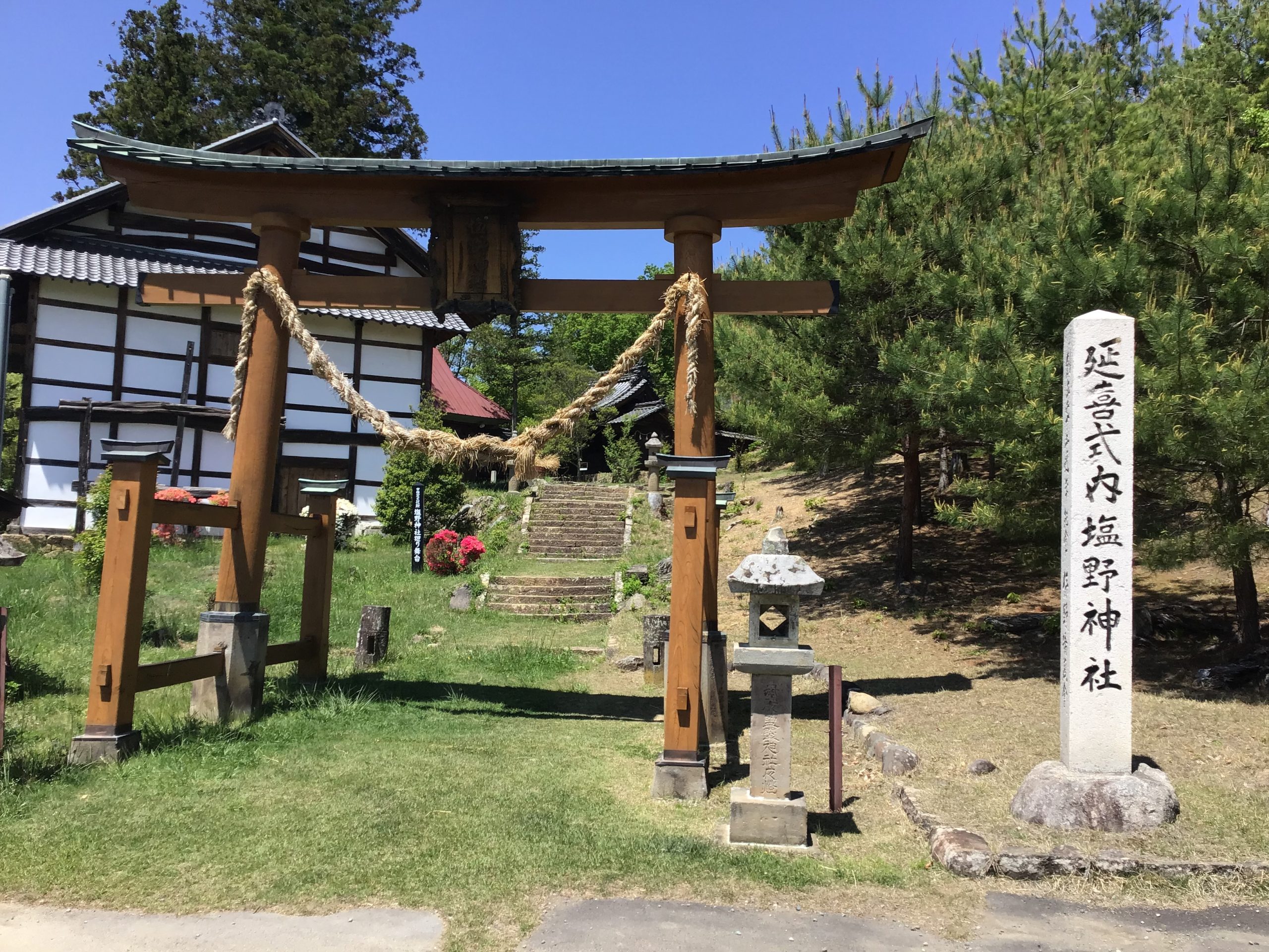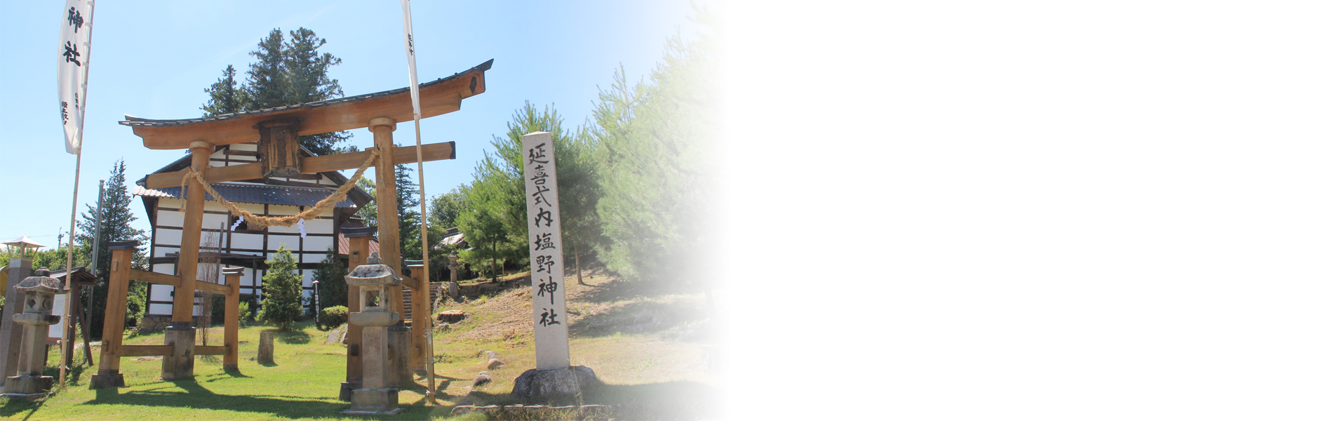 塩野神社の祭神は日本で唯一といわれる「塩垂津彦命」を主祭神として「素戔嗚尊」「建御名方命」の3柱の神様が祭られている。