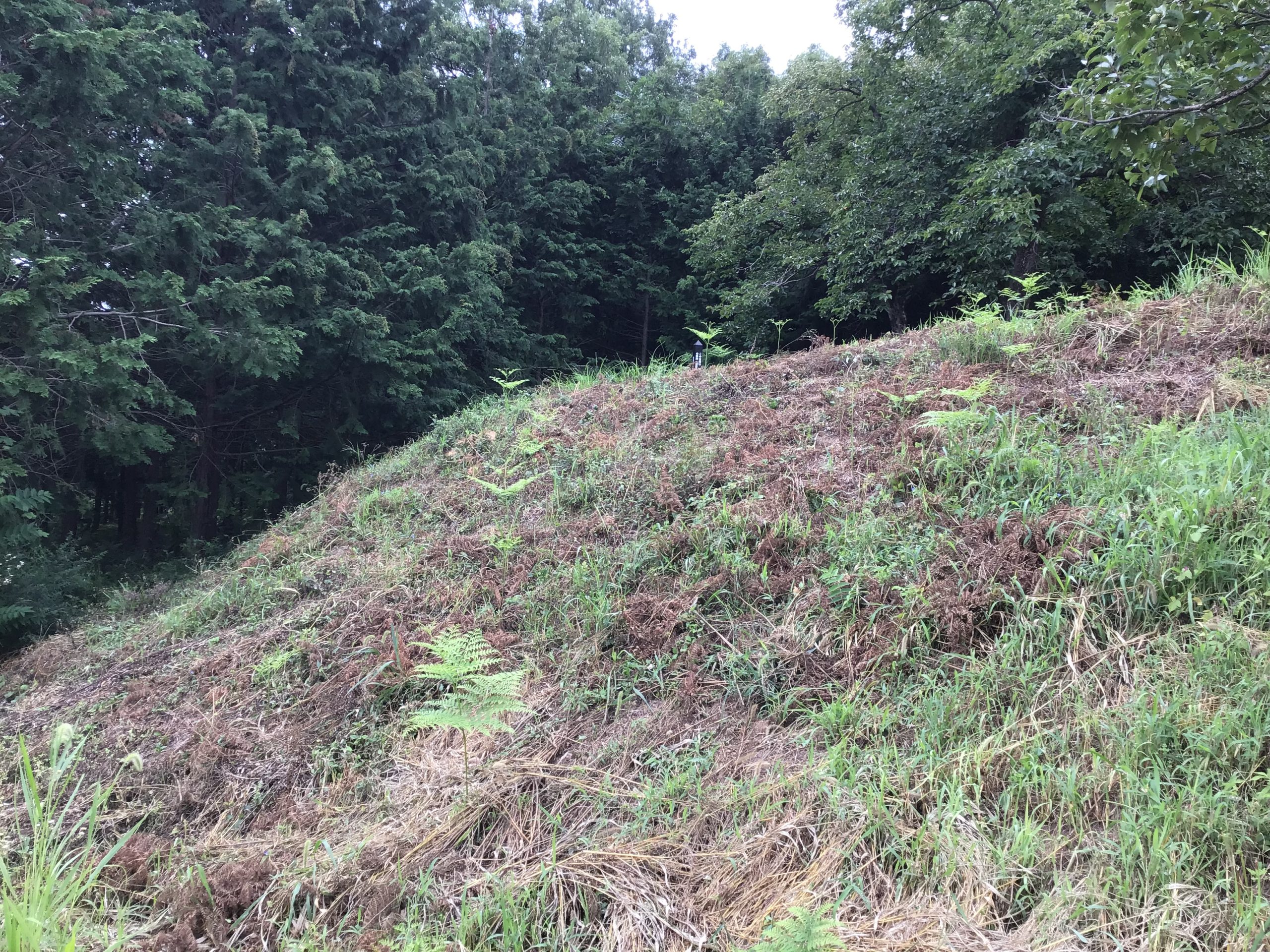 西暦600年頃(推古天皇の御代)作られたものと推定される。埋葬者は特定できないがその当時の有力者の古墳であるともいわれる。川西医院の上方にある小山が口明塚である。その後方の段丘と重なって長く引く部分は同土堤である。径15m内外で、最も高い部分で3mほどあり円墳である。